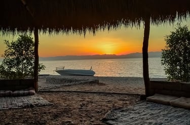 Estamos ubicados en Ras Shitan, Nuweiba, justo en la playa del Mar Rojo.